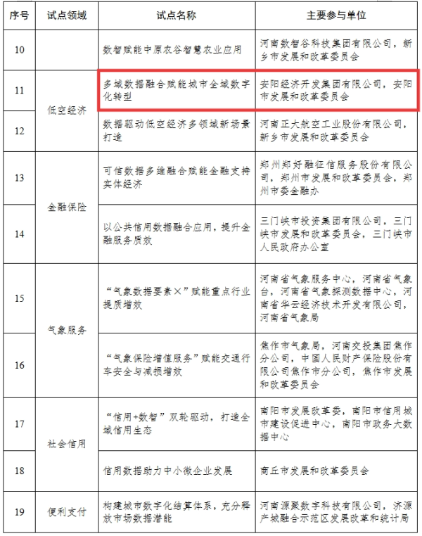 近日,河南省發(fā)展和改革委員會發(fā)布《關(guān)于印發(fā)首批河南省重點(diǎn)領(lǐng)域數(shù)據(jù)資源開發(fā)利用試點(diǎn)名單的通知》,集團(tuán)下屬經(jīng)開信息化公司申報(bào)的“多域數(shù)據(jù)融合賦能城市全域數(shù)字化轉(zhuǎn)型”(低空經(jīng)濟(jì)領(lǐng)域)項(xiàng)目成功入選全省首批數(shù)據(jù)資源開發(fā)利用試點(diǎn)。