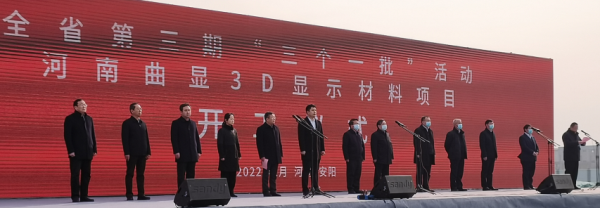 2022年1月4日上午,集團副總經(jīng)理溫惠玲陪同市委副書記、市紀(jì)委書記黃明海,市政府副市長王新亭,市政府副市長、安陽縣委書記王紅兵以及河南投資集團有限公司、市城鄉(xiāng)一體化示范區(qū)、東旭集團、新石器公司等相關(guān)領(lǐng)導(dǎo)前往示范區(qū)參加我市“三個一批”項目開工儀式。在開工儀式活動現(xiàn)場,黃明海書記宣布全市第三期“三個一批”活動暨河南曲顯3D顯示材料項目開工。