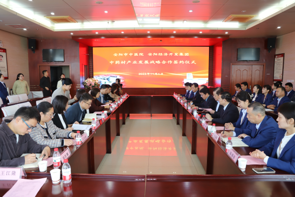 2023年11月1日上午,集團與安陽市中醫(yī)院中草藥產業(yè)戰(zhàn)略合作框架協(xié)議簽約儀式成功在安陽市中醫(yī)院四樓會議室舉行。集團黨委副書記、總經理張姝娜,黨委委員、副總經理溫惠玲,安陽市中醫(yī)院黨委書記姚曉峰,院長尉建華,黨委委員、紀委書記萬衛(wèi)黨、副院長齊德軍、張克清出席簽約儀式,儀式由中醫(yī)院黨委書記姚曉峰主持。