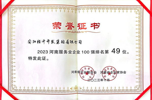 近日,集團(tuán)在河南企業(yè)100強(qiáng)高峰會(huì)上入選“2023河南服務(wù)業(yè)企業(yè)100強(qiáng)”,位列榜單第49位,這是集團(tuán)連續(xù)第2年獲此榮譽(yù)。